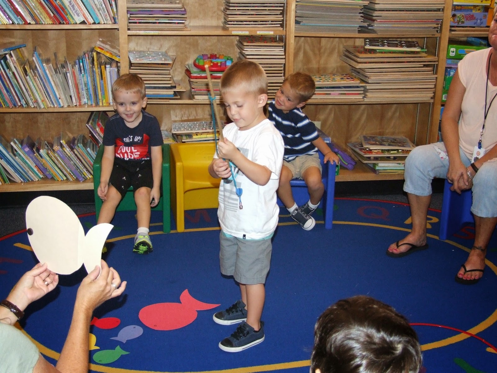 Miss Julie played a fun game with us today. In the AM class we went fishing and described the fish we caught.